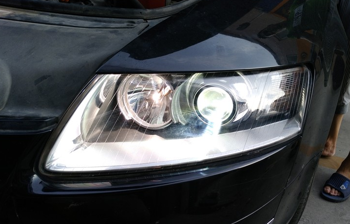 A6車主也是聽朋友介紹我們這里改燈專業(yè)過來的。車開了多年,大燈嚴(yán)重老化,晚上跑起來跑的眼睛疼。本來想改成總成,打聽了一下原裝的很貴,副廠的怕有問題。剛好知道我們?cè)趯iT改燈,就直接把原車燈罩更換,然后再在原車基礎(chǔ)上改裝。